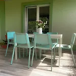 The accommodation includes a storage space, a balcony, and a terrace with air conditioning for utmost comfort. A highlight of Green Oasis Garden apartment for guests is the presence of hair dryers, bath sheets, and bathrobes in the bathroom. Additionally, you'll find a walk-in shower and a separate toilet.